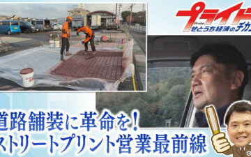 「ストリートプリント工法」の既存や新設のアスファルト舗装の路面を再加熱し、柔らかくなった表面にレンガ調や石畳調のデザインパターンを模ったテンプレートで型押し(凹)目地入れ、カラーボンドで着色コーティングする工法で街の景観を支えています。